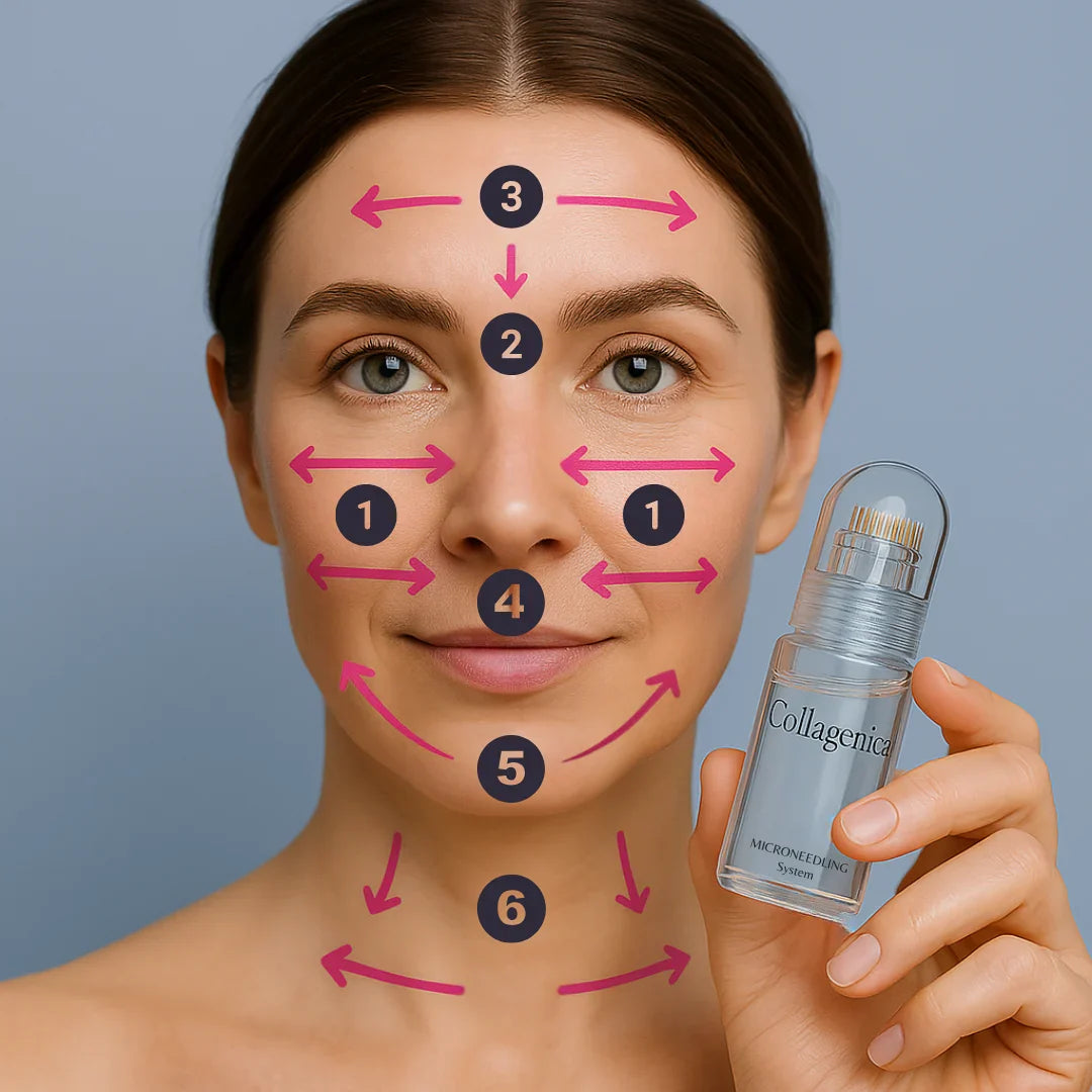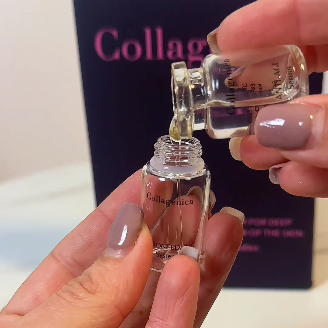 Collagenica a fost creată pentru a oferi o terapie anti-îmbătrânire profesională la domiciliu – fără durere, fără proceduri complicate și fără vizite costisitoare la clinici. Fiecare procedură durează aproximativ 5 minute și se efectuează o dată pe săptămână, folosind 1 cap de ac și 2 flacoane de ser.